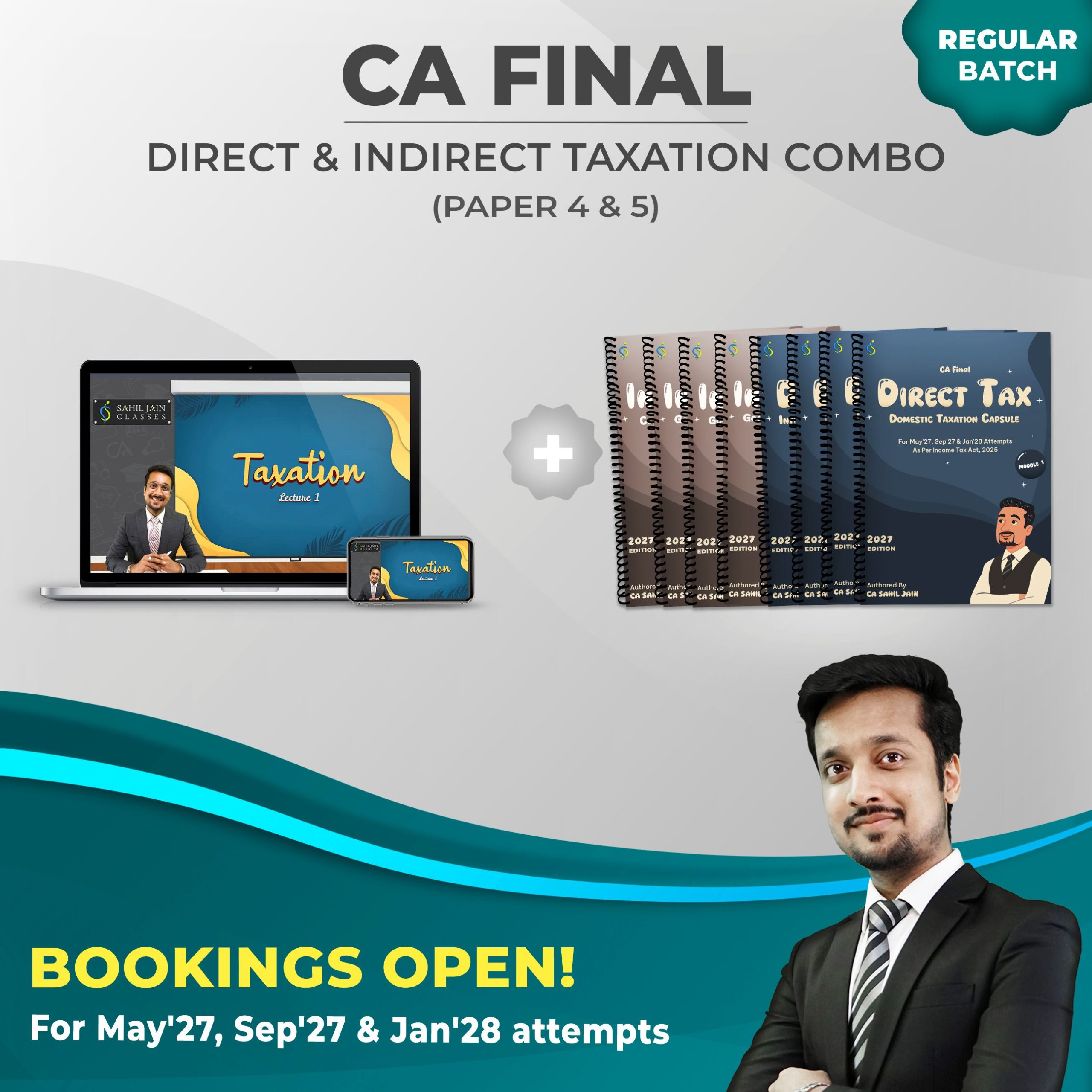 Note:- This is the latest batch for May’27, Sep’27 & Jan’28 Attempts as per New Syllabus of CA Course which covers the latest Income Tax Act, 2025. The batch starts around Aug’26 and takes roughly around 3 months to complete. For those who wish to start classes sooner, you can register for older classes and start watching those classes instantly. You will get amendment lectures separately from Sahil sir covering all changes in detail.